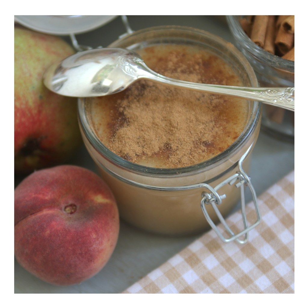 La compote de fruits de notre verger, de pomme, de poire, de pêche de vigne à la cannelle🍎 🍏 🍐 🍑 🥝