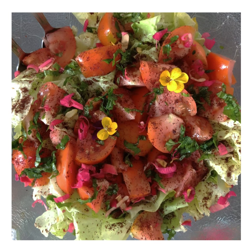 Salades verte, tomates, petites fleurs comestibles du champs 🌱🌿🌺🌸🌼
